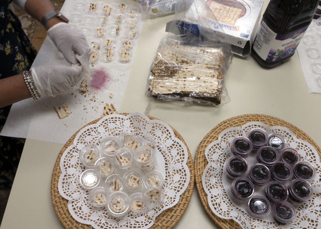 Gloria Moreno breaking and packing crackers for the Easter Sunday communion in Iglesia Bautista Bíblica Hispana, El Sobrante, Ca. Sunday, April 4th, 2021.