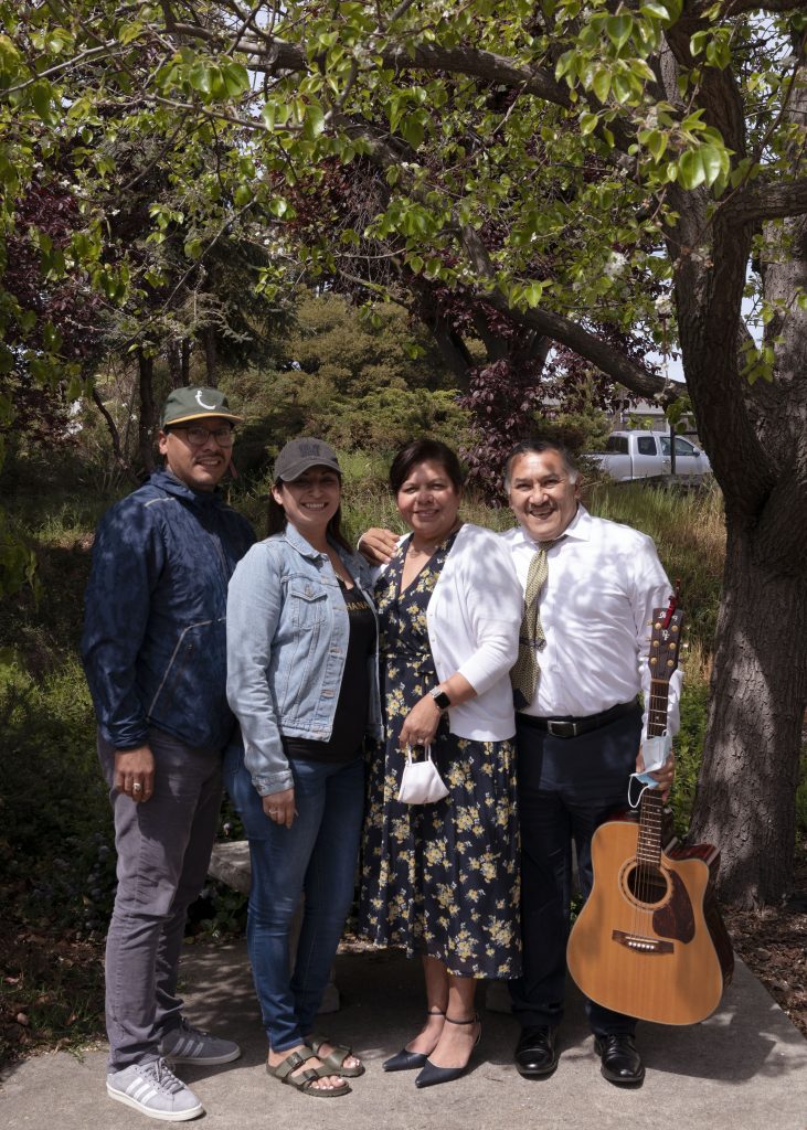 Ivan, Natalie, Gloria and Sergio Moreno (left to right) posing for their Easter Sunday portrait, outside of Iglesia Bautista Bíblica Hispana, El Sobrante, Ca. Sunday, April 4th, 2021.