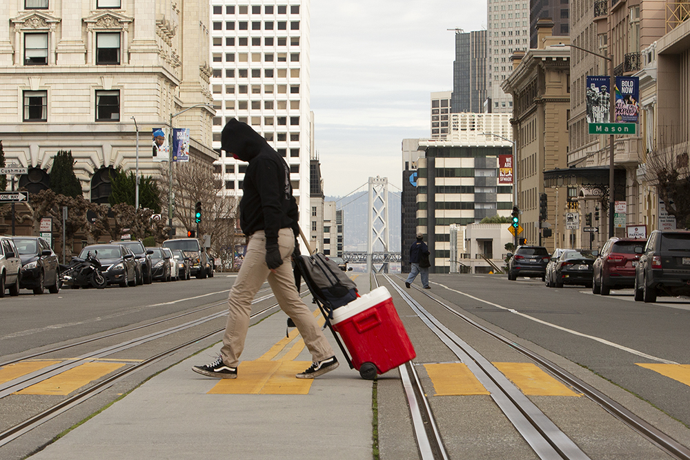 Reis walks home with his supplies leaving onlookers with joy filled memories throughout San Francisco.