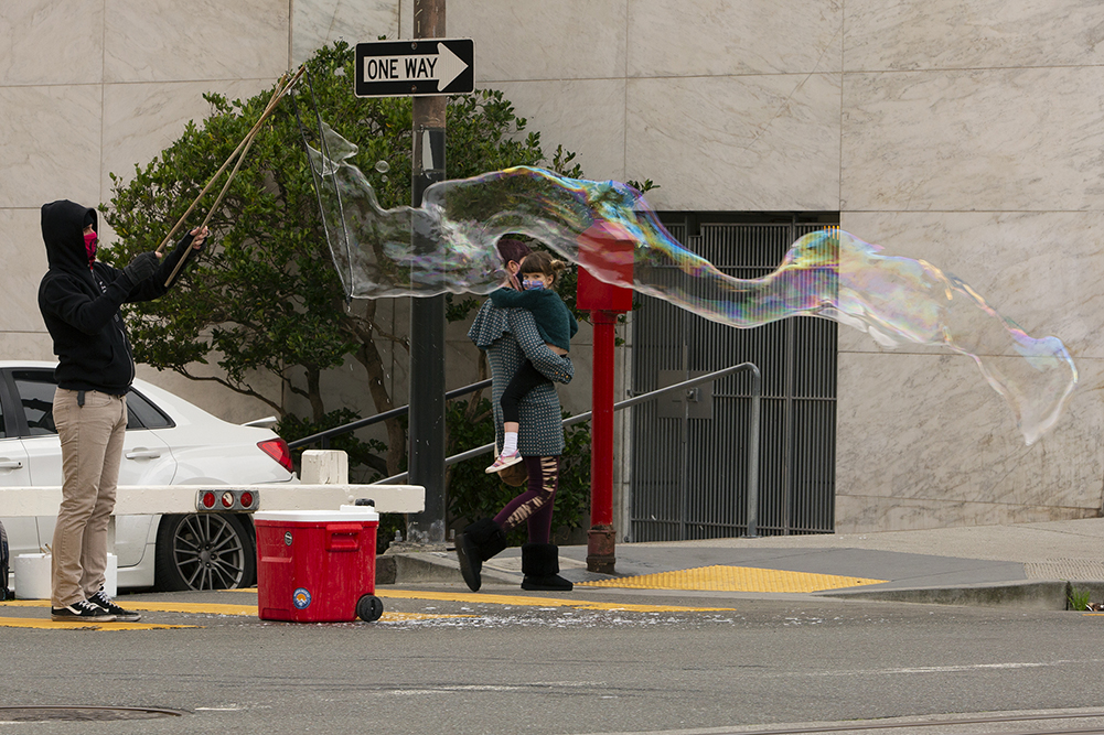 I met Reis during a particularly warm day in the midst of Covid-19 at Baker Beach. Quarantine had really been weighing on me at this particular time and when I saw Reis making these gigantic bubbles on the beach I couldn’t help but to be filled with joy. I was so moved at how a grown man making bubbles as I once did as a child brought back so many nostalgic memories and allowed me to pause my grievances.