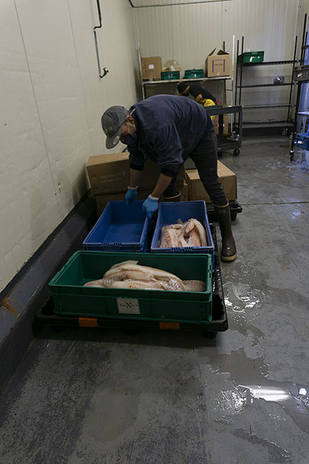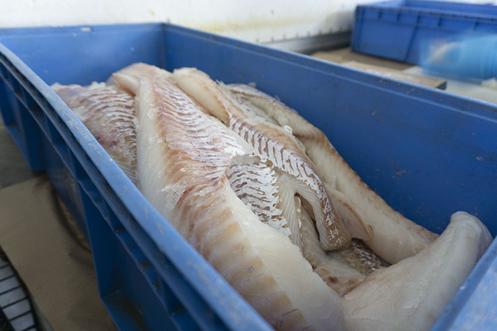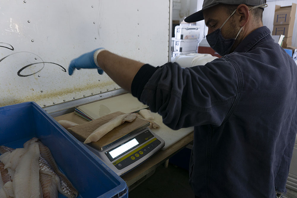 Gianni’s job is to cut and portion fish, in this case it’s Alaskan Cod.